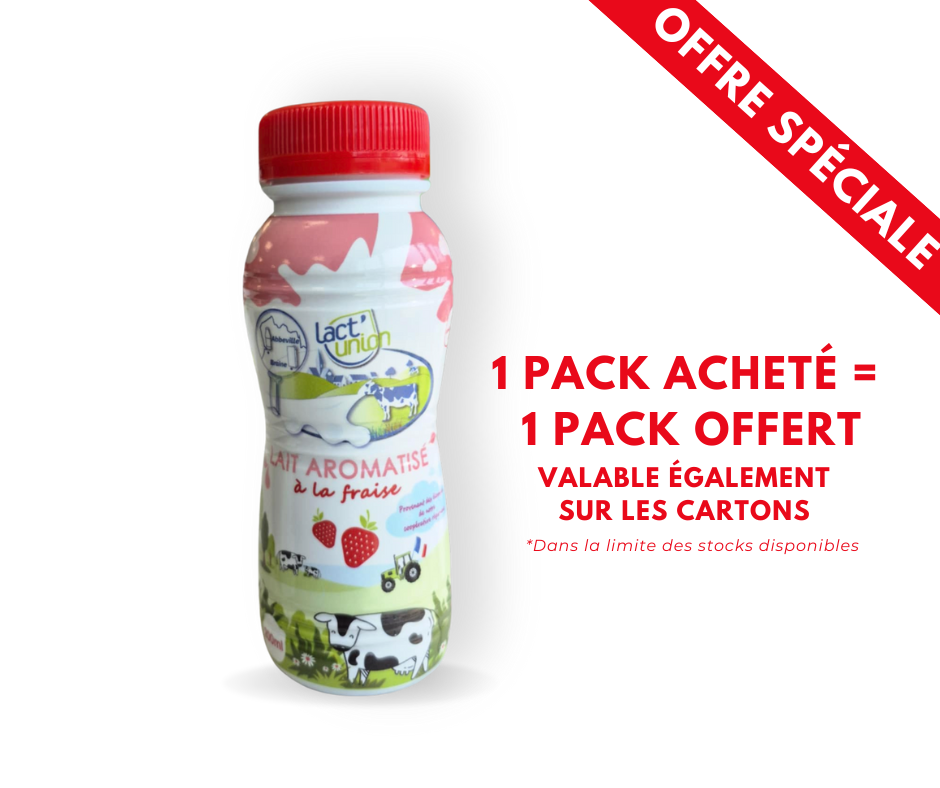 Une recette gourmande de lait aromatisé à la fraise, sans colorant, source de calcium et de Vitamine D. Avec son bon goût de fraise et sa bouteille pratique, il se déguste facilement à tout moment de la journée : au petit-déjeuner, au goûter ou en balade. Un lait aromatisé local, sain et savoureux, qui plaira aux petits comme aux grands !